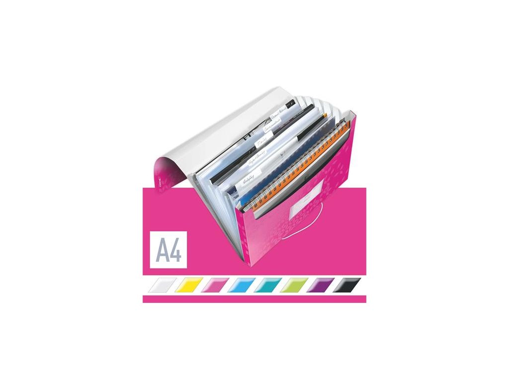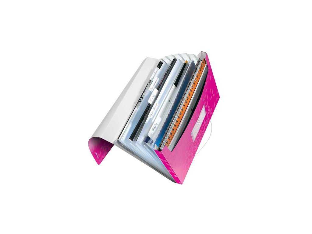 Harmoniková doska, A4, PP, 6 priehradiek, LEITZ "Wow", ružová