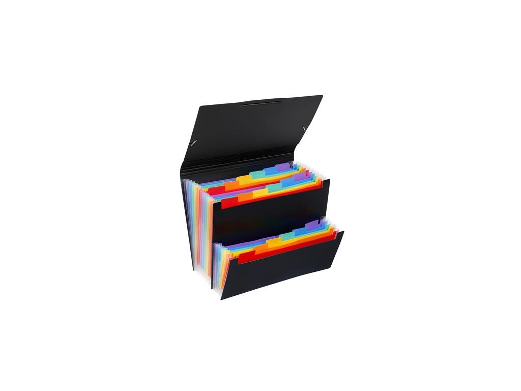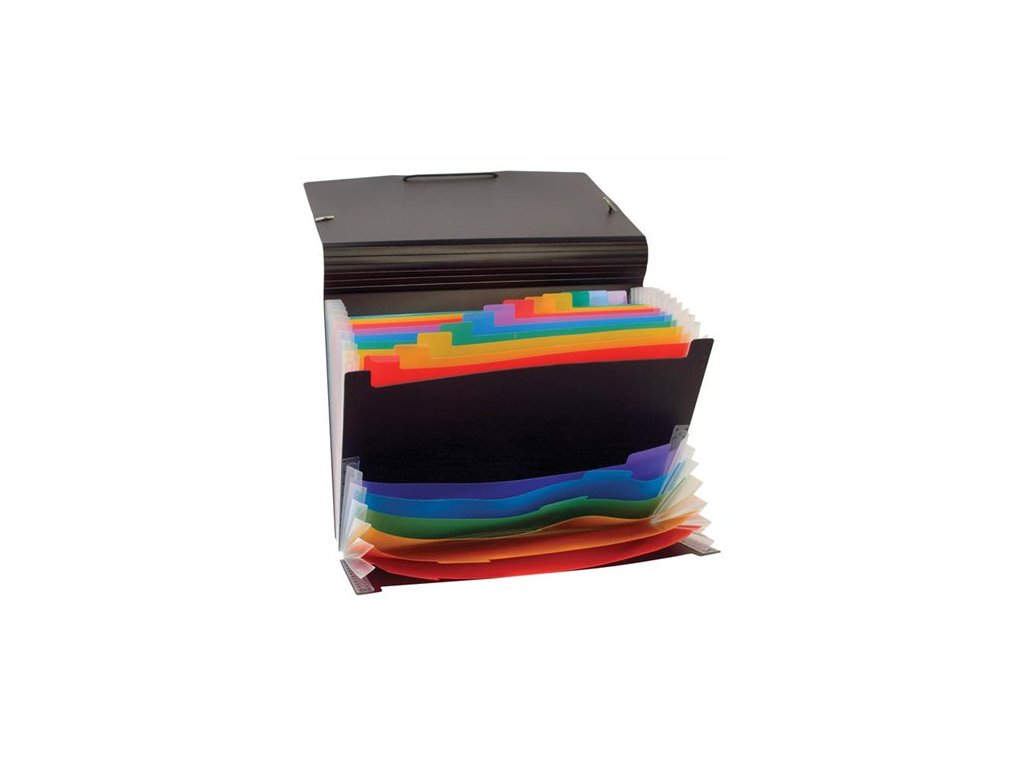 vhodné na uchovávanie dokumentov A4 z odolného, pružného polypropylénového materiálu registrový systém s popisovateľnými etiketami vonkajšia časť čiernej farby, vo vnútri farebné priehradky verzia 12+6 obsahuje 12 priehradiek s rozmerom A4 a 6 priehradiek s rozmerom A4/2 Značka: VIQUEL Výrobca: VIQUEL SAS Adresa: 77 Rue de Mantes 92700 Colombes, France Web: www.viquel.fr Email: lpalix@viquel.fr, ijourdain@viquel.frDodatočné parametre