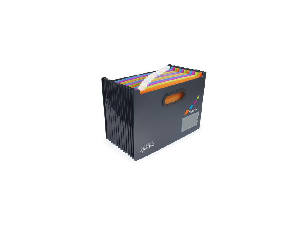 Harmonikový box na dokumenty, A4, PP, 13 priehradiek, antibakteriálny, RAPESCO "SupaFile", čierny