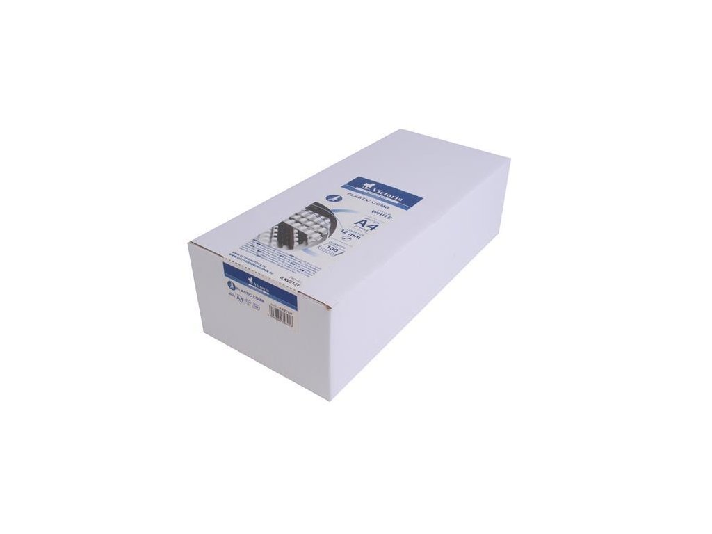 Hrebeň, plastový, 12 mm, 56-80 listov, VICTORIA OFFICE, biely