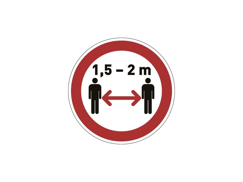 - samolepiaca nálepka na označenie podlahy ,, Udržujte odstup 1,2 - 2 metre" - samolepiaca nálepka - vyhovuje predpisom ASR A1.3 a DIN EN ISO 7010 - Priemer: 430 mm, hrúbka: 0,25 mmDodatočné parametre