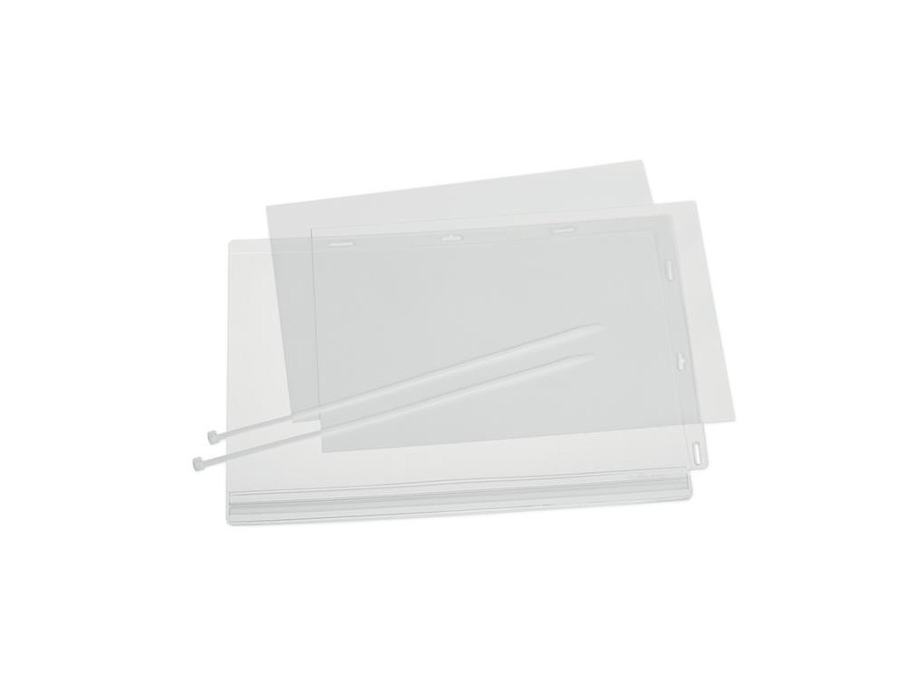 Vodeodolné informačné vrecká sú ideálne na umiestnenie informácií v exteriéri, napr. v záhradkárstve, saune, kúpeľoch, na bránach, všade, kde sa informácie dostanú do kontaktu s vodou alebo vlhkosťou. vodoedolné uzatváranie chráni obsah vreciek pred dažďom, vlhkosťou, zašpinením upevnenie pomocou združovačov káblov (2 ks v balení) testované podľa normy IPX5 proti striekajúcej vode (voda z 6,3 mm trysky mieri na zariadenie zo všetkých uhlov, pri prietoku 12,5 litrov za minútu a tlaku 30 kN/m2 počas 3 minút zo vzdialenosti 3 metrov) priehľadné, UV stabilné, odolá povetermostným podmienkam, nereflexné použitie horizontálne alebo vertikálne rýchla a jednoduchá výmena obsahu kapacita: 2 ks 160 g papiera (2 ks v balení) bezplatné šablóny sa dajú stiahnuť zo stránky www.durable.deDodatočné parametre