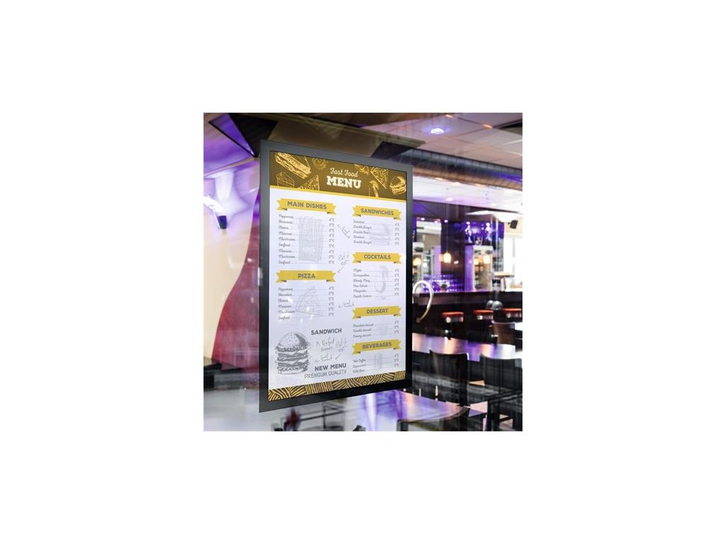 - informačný panel so statickým priľnutím pre použitie na okná, vystavené priamemu slnečnému žiareniu - s ochranou voči UV žiareniu - odoláva teplotám až do 70 °C - v prípade potreby je ľahko premiestniteľný - formát A3 - samolepiaciDodatočné parametre