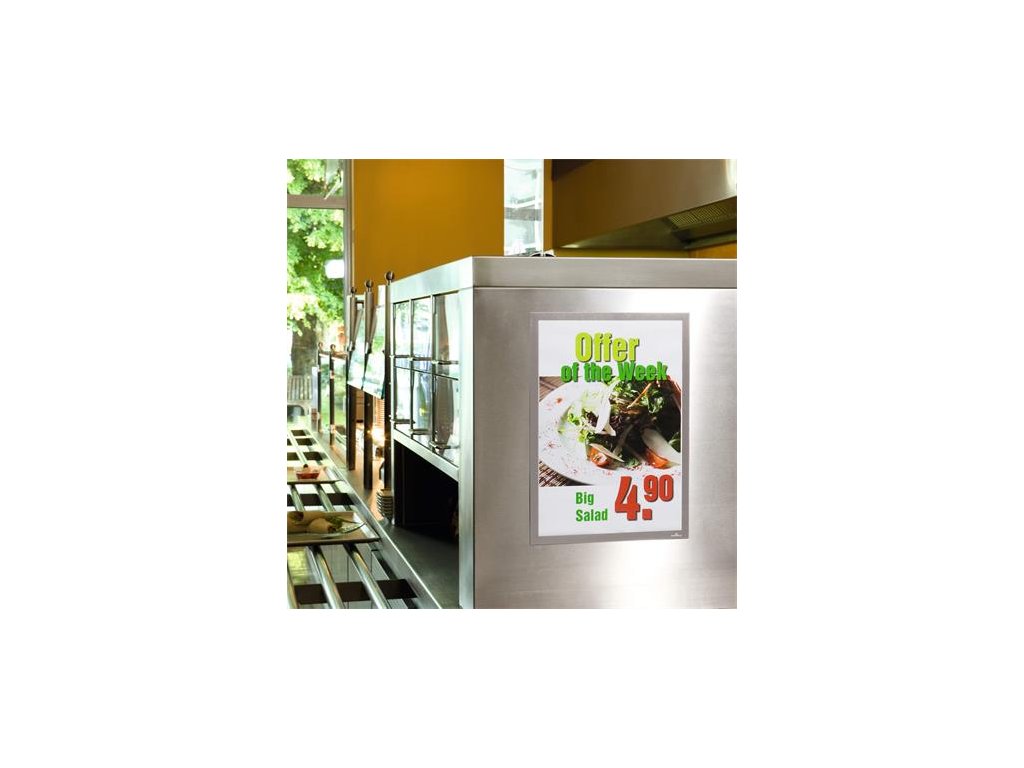- DURAFRAME® informačný panel s prednou magnetickou časťou a zadnou samolepiacou časťou - ideálny na vystavovanie plagátov, kľúčových informácií, špeciálnych oznamov alebo dôležitých čísel - informácie sa ľahko vymieňajú a sú čitateľné z oboch strán, ak sa panel umiestni napr. na okno alebo priehľadné dvere - vhodný na všetky hladké a pevné povrchy - v prípade potreby je ľahko premiestniteľný bez potreby vŕtania • jednoduchá výmena vystavených dokumentov vďaka magnetickému uzáveru • oblasť použitia: inzeráty, umiestnenie informácií, oboznámenie, orientácia • vertikálne a horizontálne uchytenie • vonkajšie rozmery: 325 x 445 mmDodatočné parametre