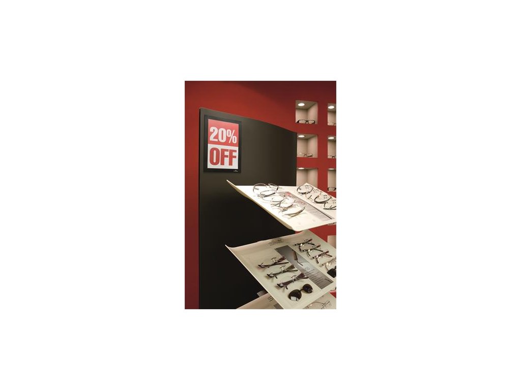 Odklápací magnetický rám umožňuje rýchlu výmenu dokumentov