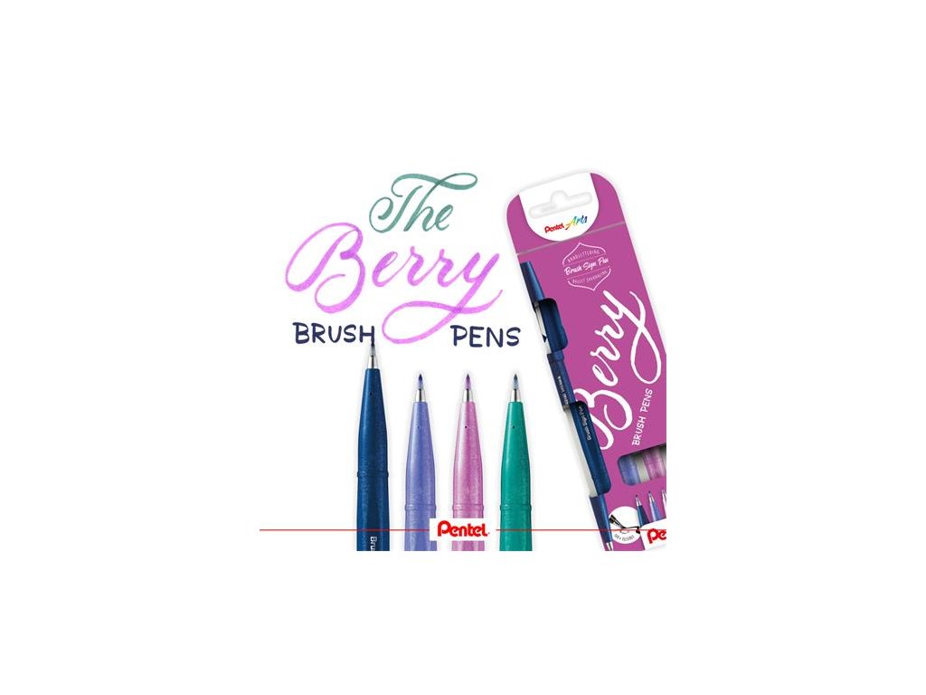 Kaligrafické štetce, sada, PENTEL "Brush Sign", 4 rôzne farby