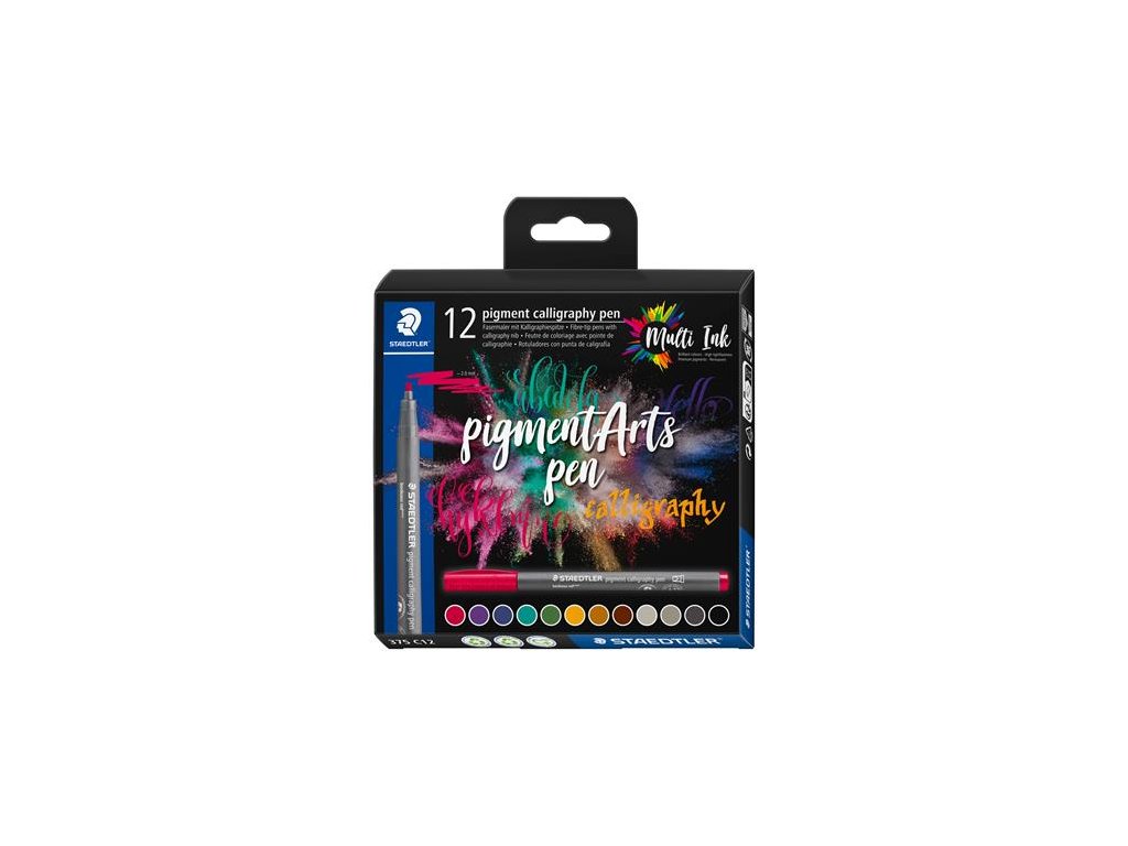 Kaligrafický popisovač, sada, 2 mm, STAEDTLER "Pigment 375", 12 rôznych farieb