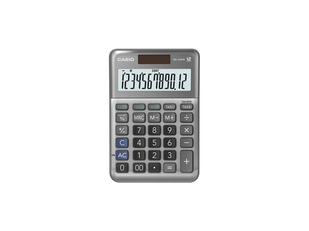 Kalkulačka, stolová, 12 miestný displej, CASIO "MS-120 FM", sivá