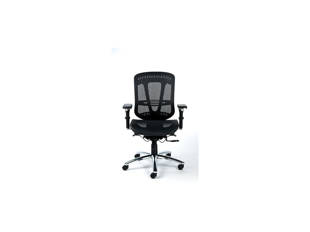 inovatívna kancelárska stolička nastaviteľná bedrová opierka komfortné vyhotovenie, ergonomicky tvarované operadlo plynové nastavenie výšky nastaviteľná hĺbka sedadla synchrónna mechanika hliníkový podstavec čalúnenie sedadla a operadla: napnutý sieťový materiál operadlo: sieťový materiál s opierkami rúk max. nosnosť: 110 kgDodatočné parametre