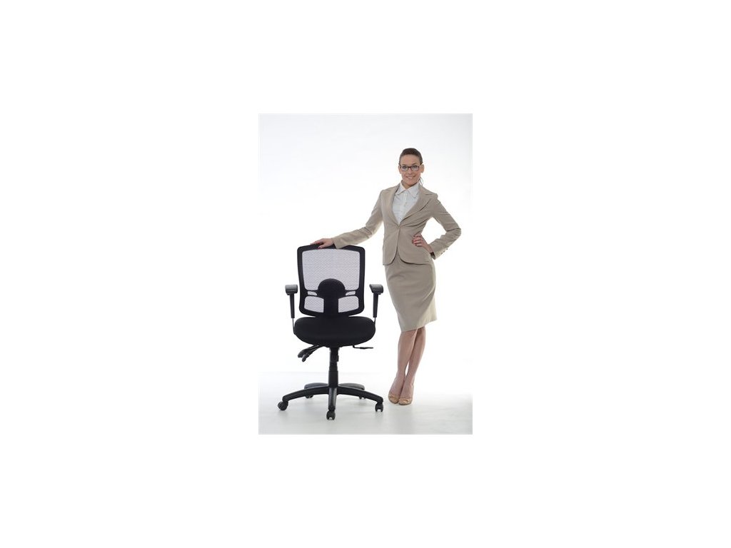 inovatívna manažérska stolička komfortné, ergonomické operadlo chrbta nastaviteľná bedrová podpera plynové nastavenie výšky nastaviteľná výška operadla nastaviteľný uhol sklonu operadla nastaviteľný uhol sklonu sedadla nastaviteľná hĺbka operadla asynchrónna mechanika nastaviteľné opierky rúk (aj do šírky) čalúnenie: sedadlo – mesh operadlo - sieťovina farba: čierna rozmery: celková výška: 98-117 cm výška sedadla: 48-58 cm hĺbka sedadla: 50 cm šírka sedadla: 51 cm nosnosť: 130 kgDodatočné parametre