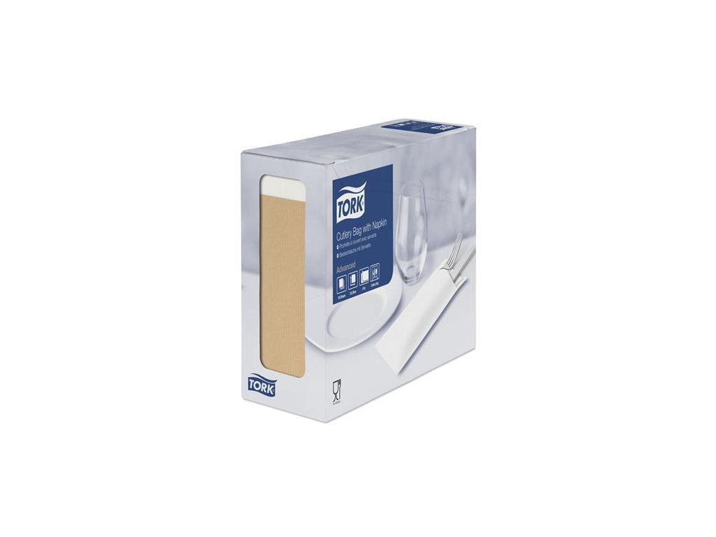 Kapsičky na príbory, 2-vrstvové, s bielou servítkou, Advanced, TORK, prírodná