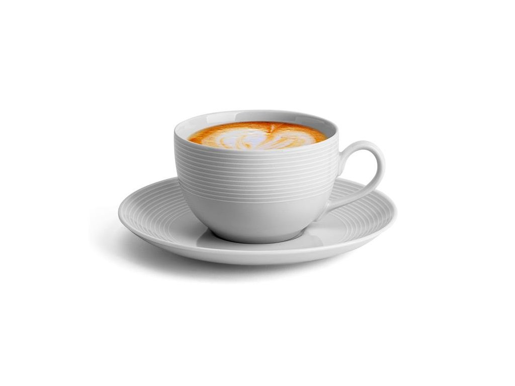 Kávová šálka + podšálka, porcelán, 25 cl, 6 ks, ROTBERG, "Elegante", biela