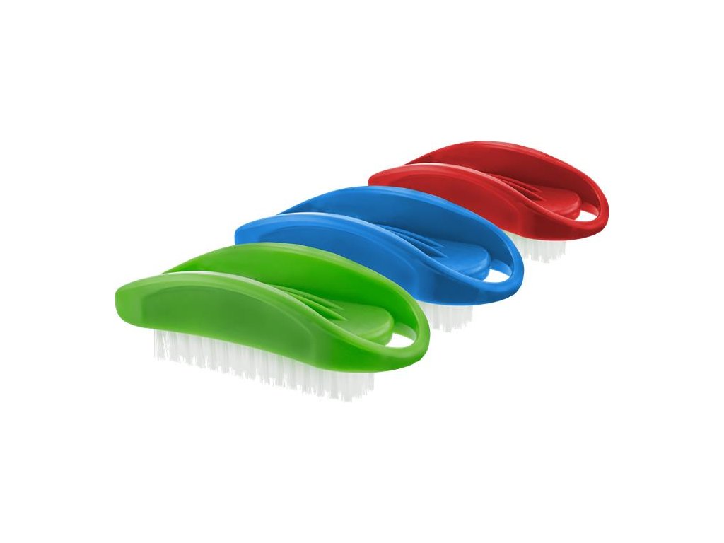 Klasická jednostranná plastová kefka na nechty s plastovými vláknami.- pohodlné uchopenie