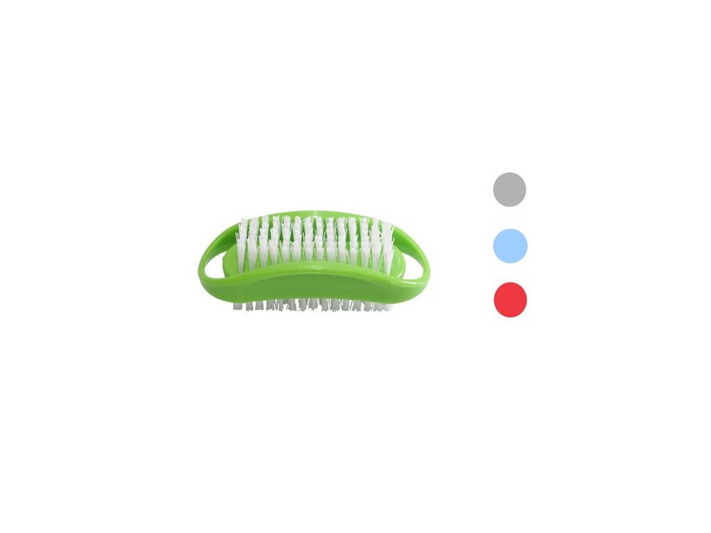 Plastová kefa na nechty so štetinkami na oboch stranách v rôznych farbách (fialová, červená, biela, zelená) Rozmer: 9 cm Farba sa nedá vybraťDodatočné parametre