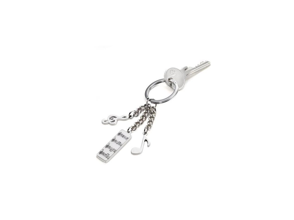 Tento prívesok na kľúče je stvorený pre milovníkov hudby a obsahuje tri dekoratívne prívesky. -3 ozdobné prívesky -notová osnova, nota, husľový kľúč -farba: striebornáZnačka: TROIKA