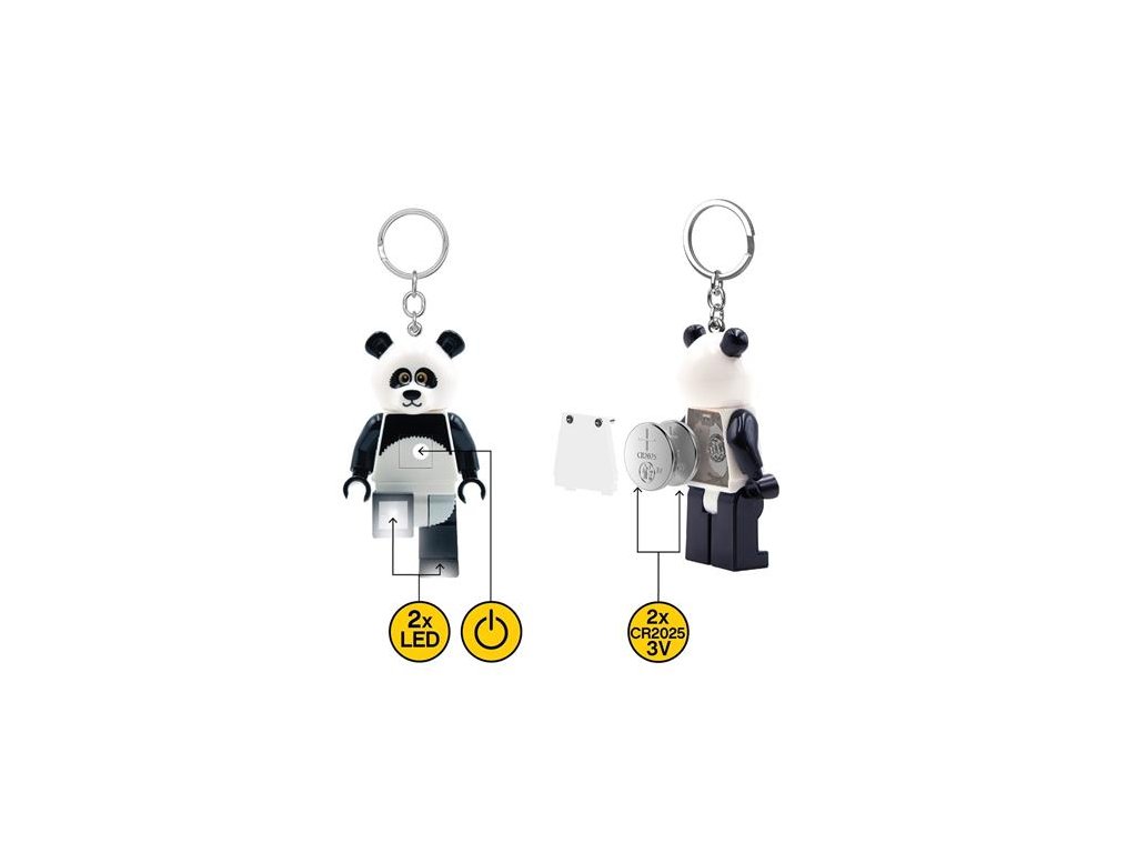 LEGO® Panda Guy svietiaca kľúčenka! výška: 7,5 cm (ruky a nohy sú odpojiteľné) -funguje na 2x CR2025/3V batérie (sú súčasťou balenia) -odporúčaný vek: 6+Dodatočné parametre