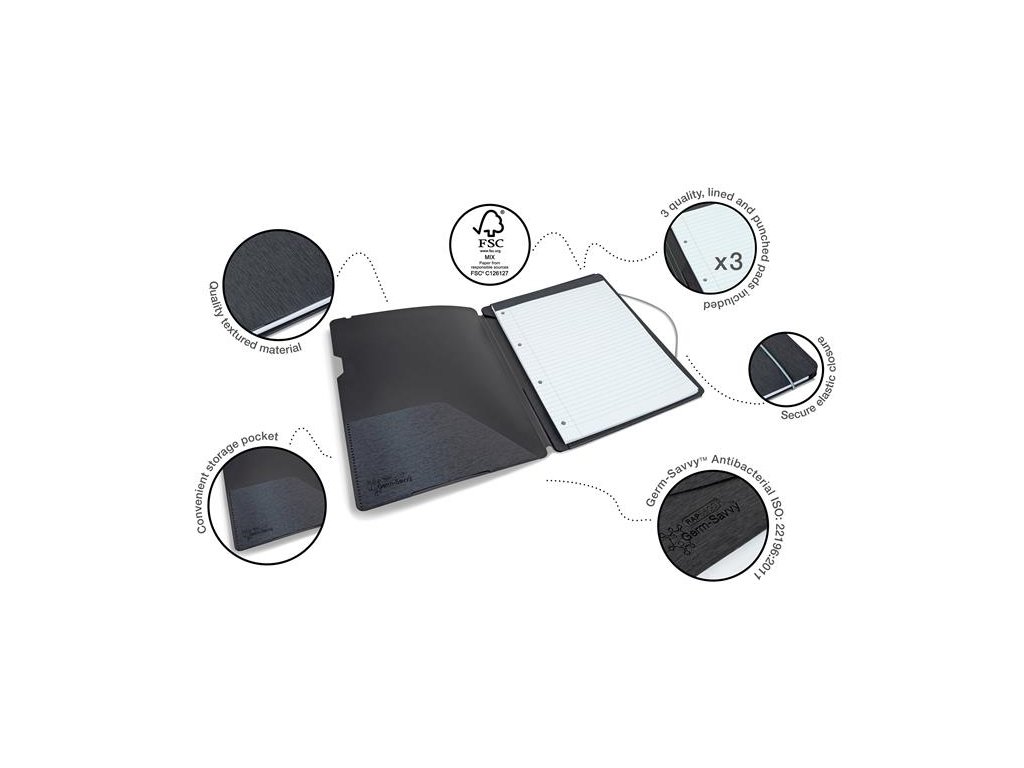- Germ-Savvy ™: ošetrené antibakteriálnym aditívom (na báze iónov striebra a zinku), ktoré inhibuje a ničí baktérie - rozmer: 240 x 315 mm - chrbát: 15 mm - odolný PP materiál - uzatvárateľné gumičkou - 700 mikrónov - vnútorné vrecko - držiak na pero na chrbáte - 3 ks 160-listových poznámkových bločkov Značka: RAPESCO Výrobca: Rapesco-Tacwise BV Adresa: Kraijenhoffstraat, 137A, 1018RG Amsterdam, Netherlands Web: www.rapesco.com Email: support@rapesco-tacwise.nlDodatočné parametre