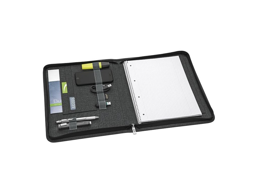 - špirálovo viazaný zápisník -môže byť použitý so špirálovými blokmi s hornými alebo bočnými spojmi alebo s lepenými štandardnými blokmi - inteligentne umiestnené otvorovy umožňujú vkladanie blokov na všetkých štyroch stranách - ideálne aj pre ľavákov - vrecká poskytujú priestor pre karty, perá a príslušenstvo - vyrobené z polyesterovej tkaniny - veľkosť: 28,5 x 4 x 35,5 cmDodatočné parametre