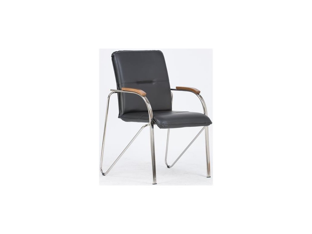 Konferenčná stolička, koženka, chrómová oceľ, opierky rúk: orech, "Sabina", čierna