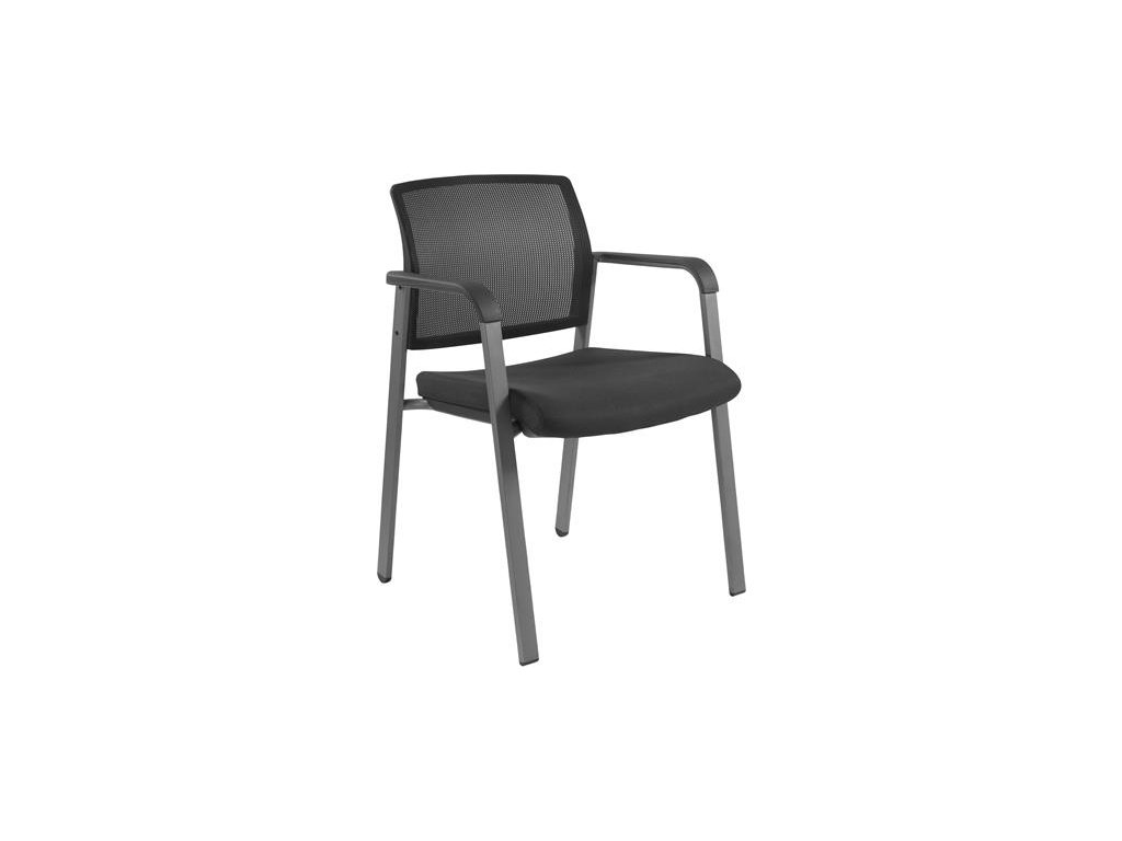 Konferenčná stolička, látkový poťah, chrómovaný oceľový rám, plastová lakťová opierka, "Miro 4L", čierna