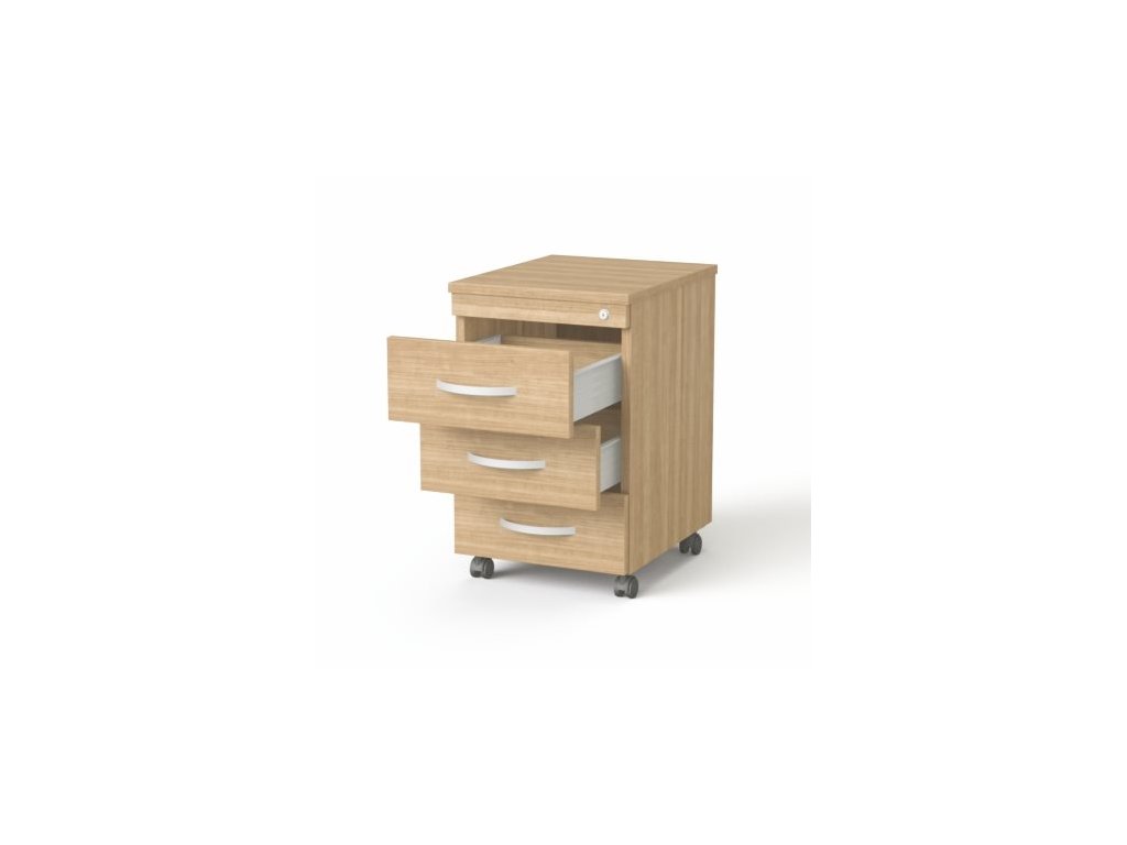 kontajner na kolieskach so zásuvkami centrálny zámok kovové zásuvky hrúbka vrchných spodných a bočných dosiek: 18 mm hrúbka vnútorných dosiek: 18 mm zmontovaný farba: jaseň rozmery: 545x420x340 mmDodatočné parametre