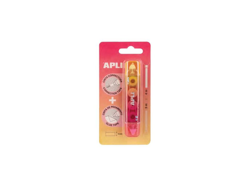 Korekčný a lepiaci roller, 2in1, 5 mm x 4-3 m, APLI , mix farieb