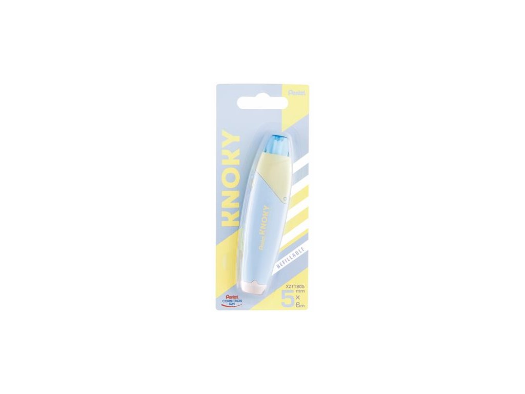 Korekčný roller, 5 mm x 6 m, naplniteľný, PENTEL "Knoky", modrý-žltý