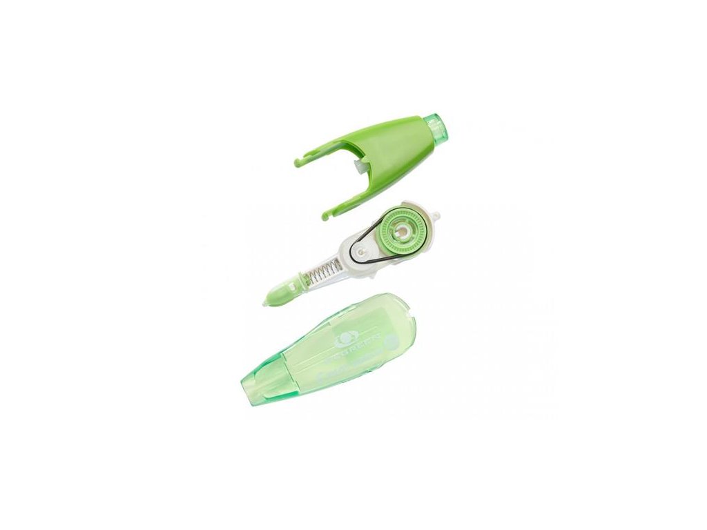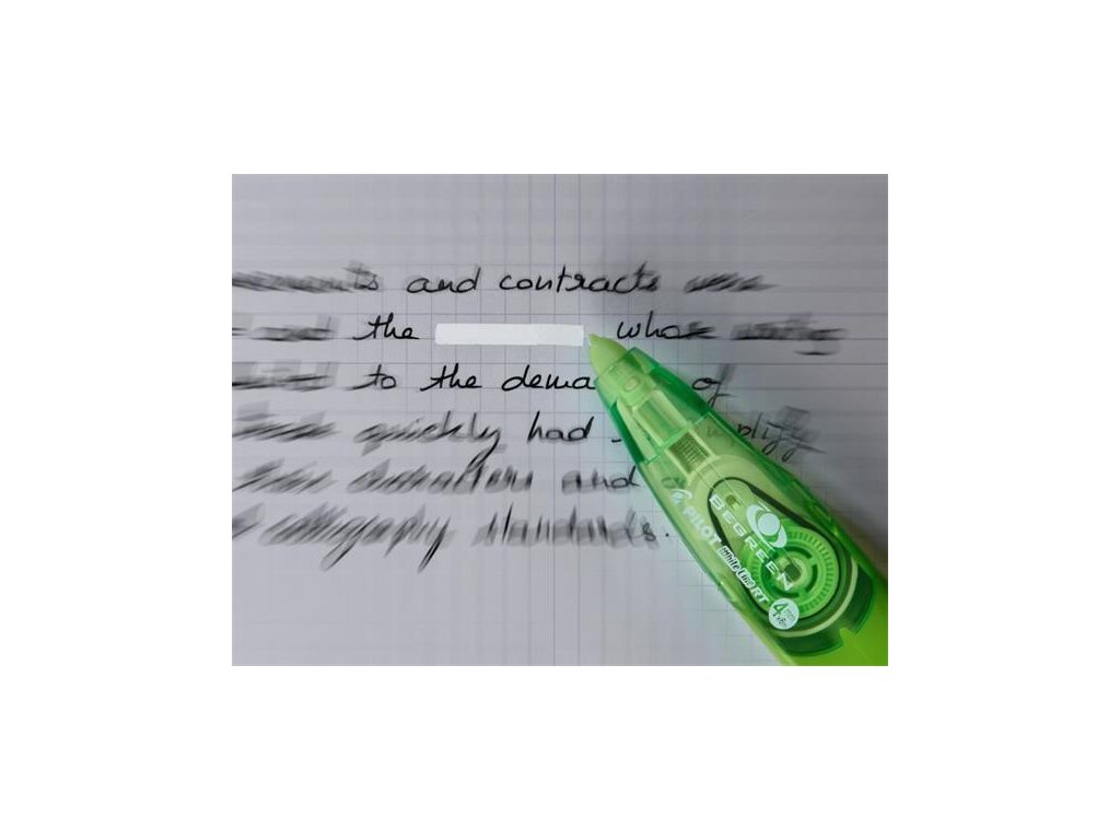 stláčací mechanizmus praktické, bez uzáveru dokonalá krycia schopnosť na kópiách nezanecháva tmavé okraje a tiene popisovateľný hneď po použití vyrobené z recyklovaného materiálu (okrem vymeniteľných častí) páska: 6 m x 4 mm vymeniteľná náplň: PWLHIBDodatočné parametre