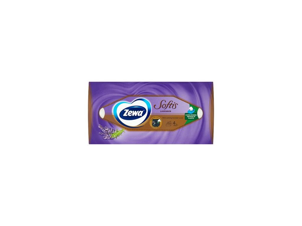 Kozmetické utierky, 4 vrstvy, 80 ks, ZEWA "Softis", levandula