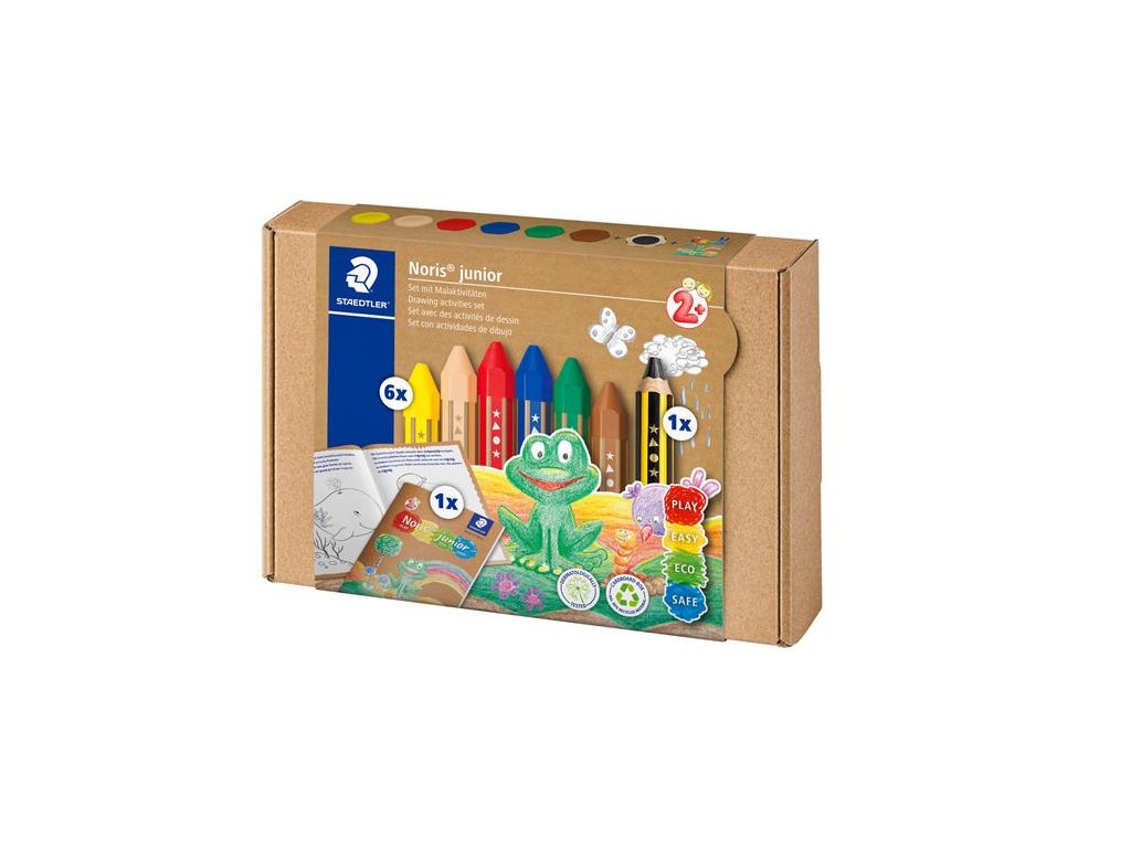 Noris® junior - Produkty, ktoré rastú s dieťaťom. Noris junior podporuje deti v rozvoji ich plného potenciálu podľa ich veku a potrieb. Učí tých najmenších pri hre, pričom je šetrné k životnému prostrediu a ich používanie je bezpečné. - ideálna sada na farbenie pre najmenších - hrubý tvar voskoviek a grafitovej ceruzky perfektne sadne do malých rúk, vďaka čomu je kreslenie ešte príjemnejšie - dermatologicky testované - odporúčaný vek dieťaťa: od 2 rokov Sada obsahuje: - 6 voskoviek v žiarivých farbách - 1 hrubú grafitovú ceruzku - 1 yošit Značka: STAEDTLER Výrobca: STAEDTLER SE Adresa: Moosäckerstr. 3 , 90427 Nuremberg, Germany Web: http://www.staedtler.com Email: https://www.staedtler.com/intl/en/service/contact/Dodatočné parametre