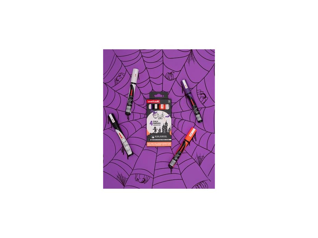 Kriedový popisovač, sada, 1,8-2,5 mm, UNI "PWE-5M","Halloween", 4 rôzne farby