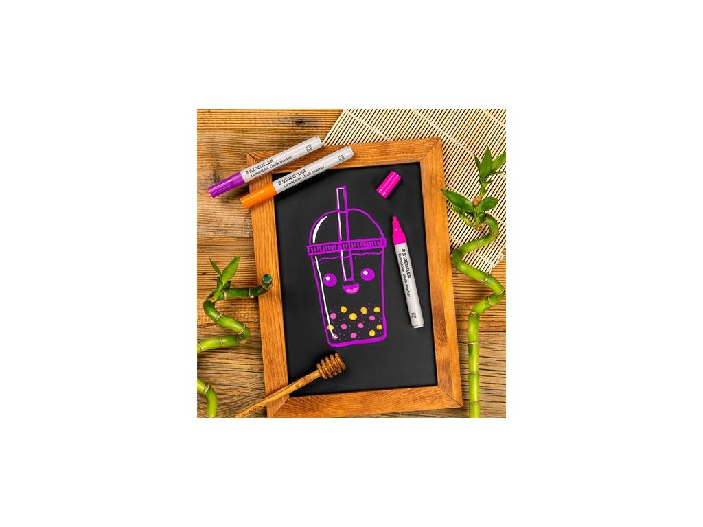 vhodný na dekorovanie a plánovanie na hladkých pobrchoch - tabuľa, sklo, okno, zrkadlo dobrá krycia schopnosť kuželový hrot nezapáchajúci atrament na báze vody intenzívne farby mokrou hrandou ľahko zotierateľný hrúbka písma: 2,4 mm Značka: STAEDTLER Výrobca: STAEDTLER SE Adresa: Moosäckerstr. 3 , 90427 Nuremberg, Germany Web: http://www.staedtler.com Email: https://www.staedtler.com/intl/en/service/contact/Dodatočné parametre