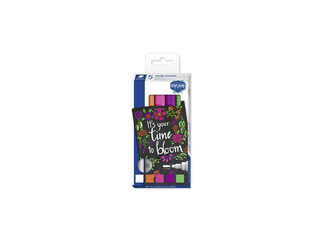 Kriedový popisovač, sada, 2,4 mm, kuželový, STAEDTLER "Lumocolor® 344", 5 rôznych farieb