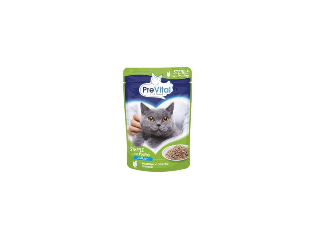 Krmivo pre mačky, v kapsičke, pre kastrované mačky, 100 g, PREVITAL, v hydinovej omáčke