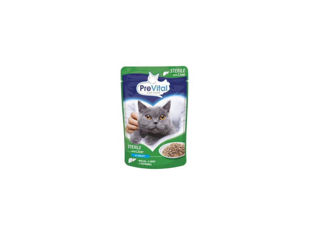 Krmivo pre mačky, v kapsičke, pre kastrované mačky, 100 g, PREVITAL, v pečeňovej omáčke