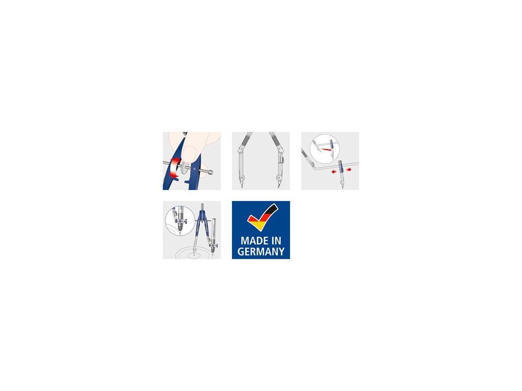 -príslušenstvo: noha pripojiteľná ku kružidlu, predlžovacia tyč, univerzálny adaptér, náhradný hrot kružidla