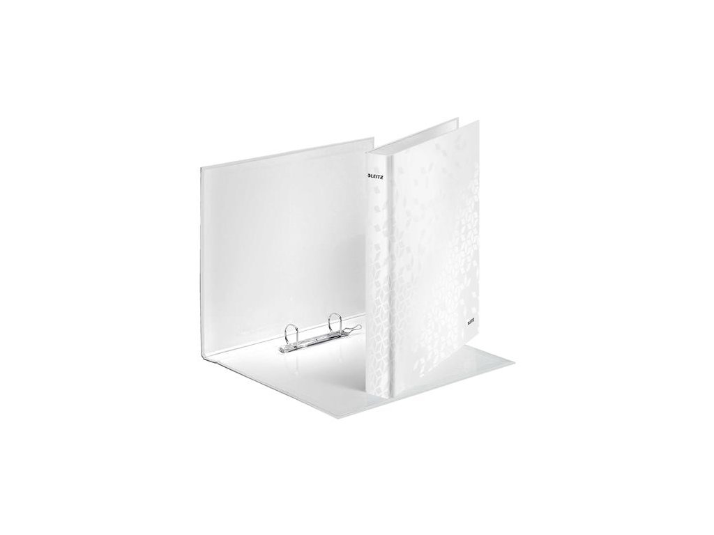 Krúžkový šanón, 2 D-krúžky, 40 mm, A4 Maxi, kartón, LEITZ "Wow", biela