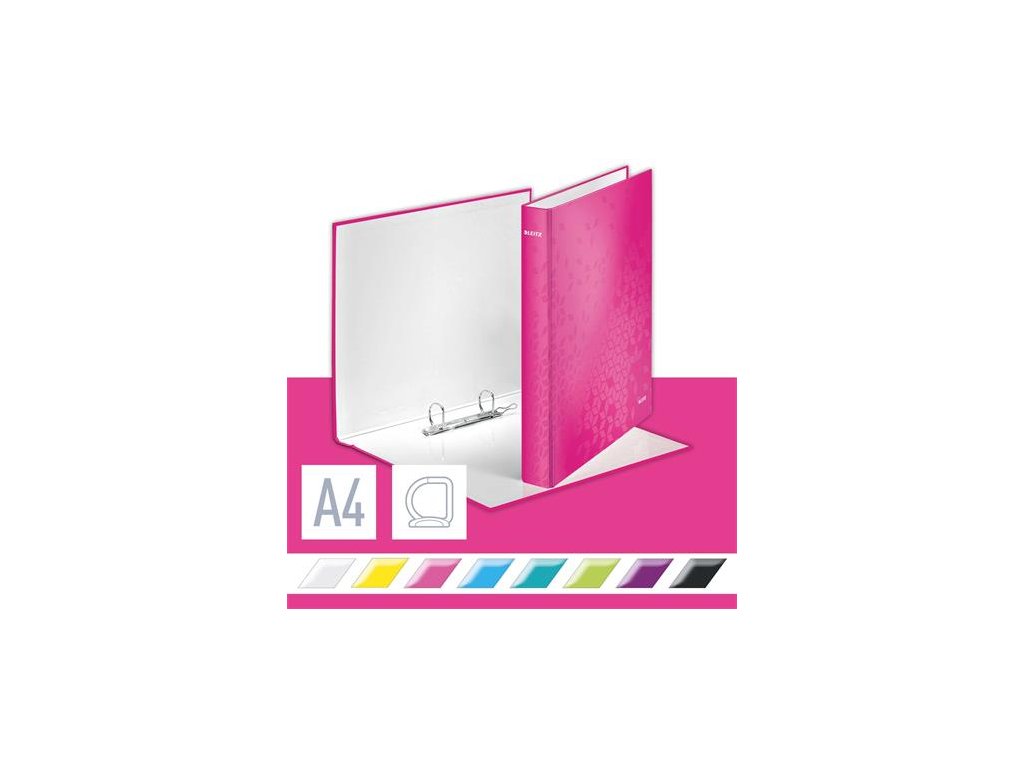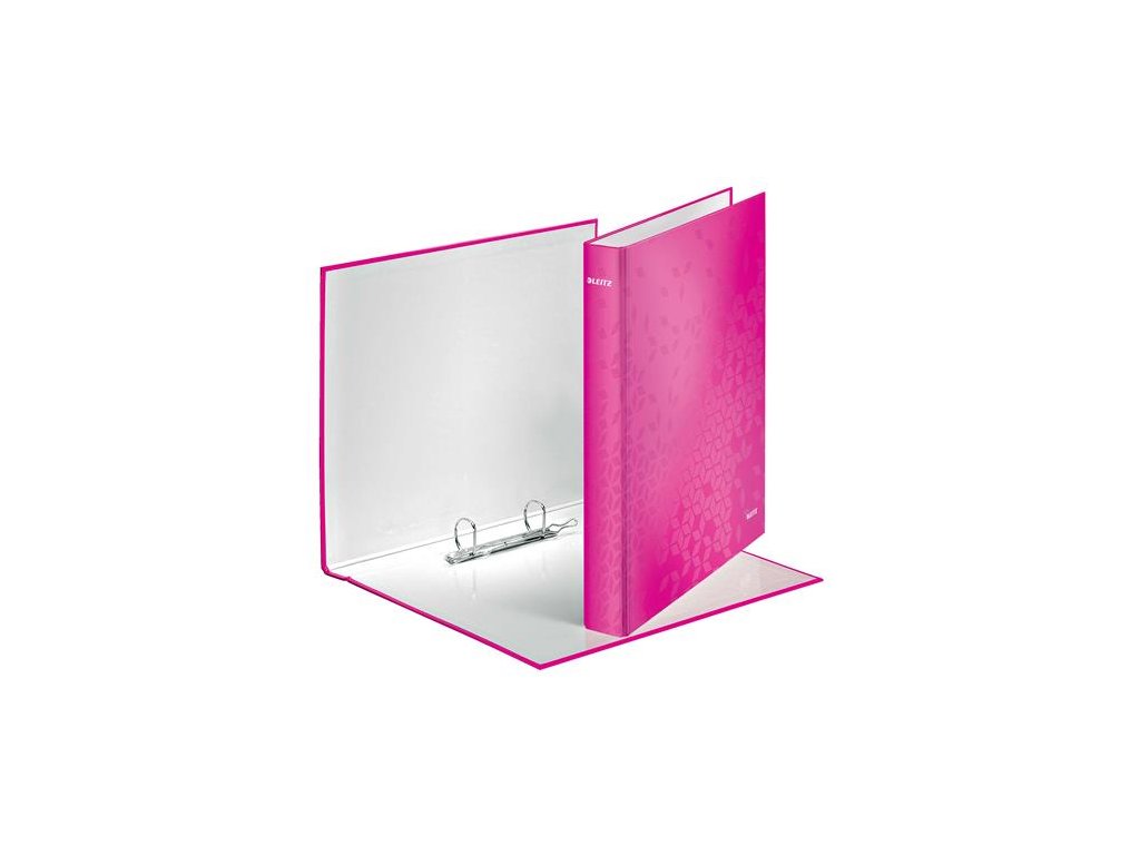 Krúžkový šanón, 2 D-krúžky, 40 mm, A4 Maxi, kartón, LEITZ "Wow", ružová