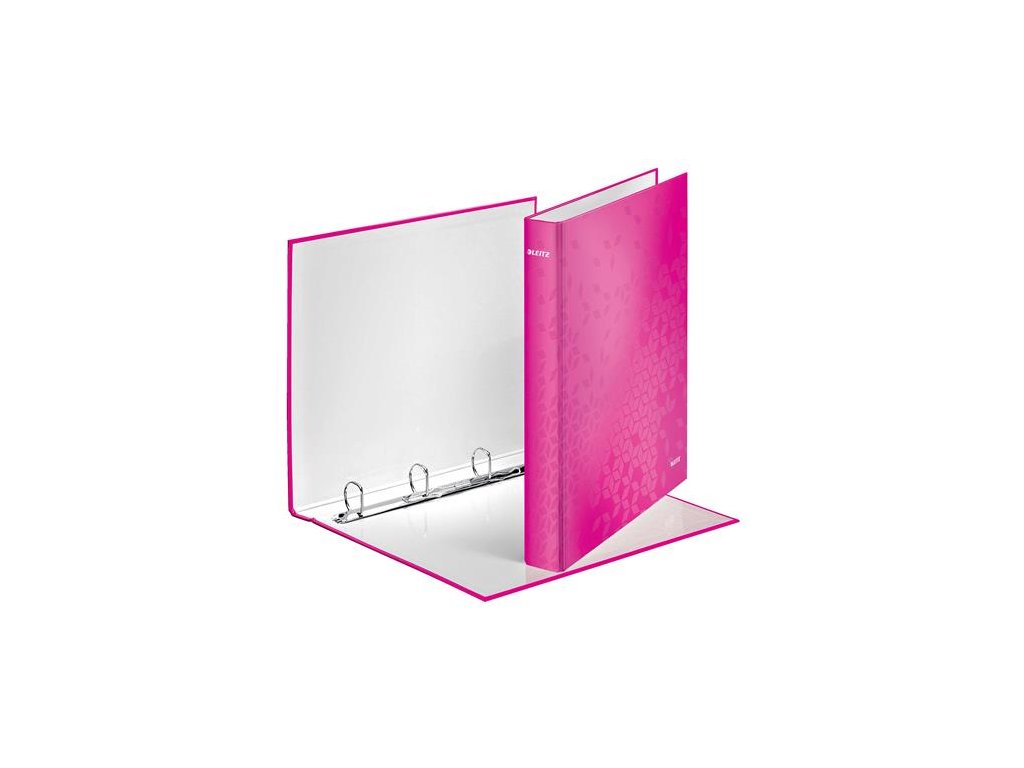 Krúžkový šanón, 4 D krúžky, 40 mm, A4, kartón, LEITZ "Wow", ružová