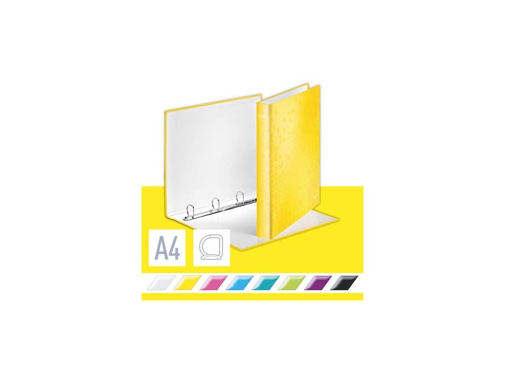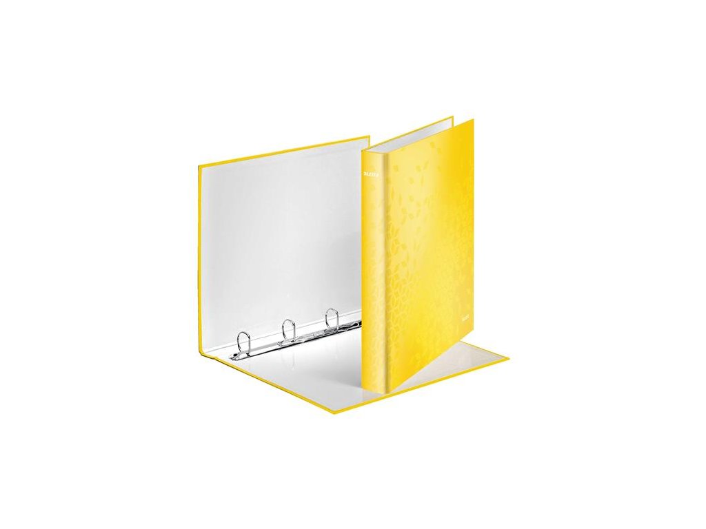 Krúžkový šanón, 4 D krúžky, 40 mm, A4 Maxi, kartón, LEITZ "Wow", žltá