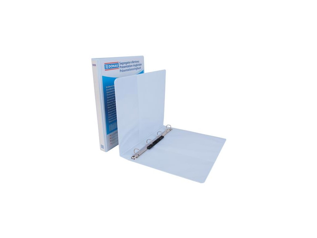 Krúžkový šanón, panoramatický, 4 krúžky, tvar D, 37 mm, A4, PP, DONAU, biela