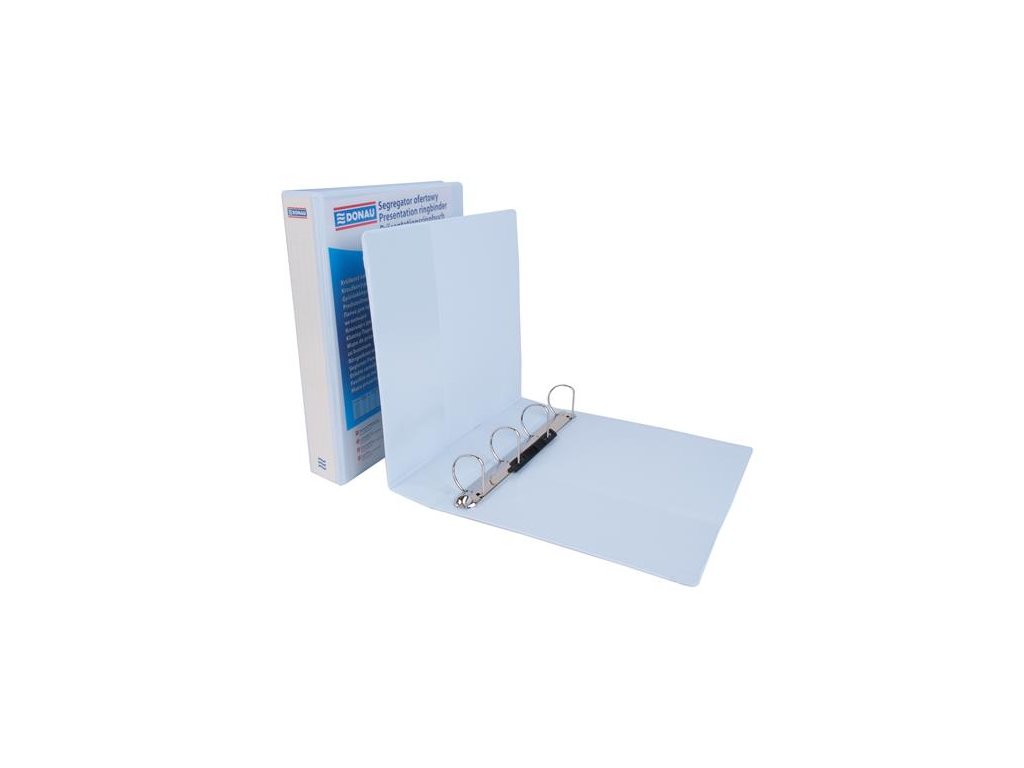 Krúžkový šanón, panoramatický, 4 krúžky, tvar D, 63 mm, A4, PP, DONAU, biela