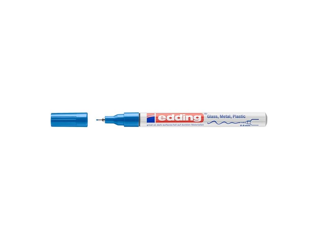 lakový a dekoračný popisovač na sklo, porcelán, plast, kov zaoblený hrot kovové telo naplnené permanentnou, lakovou farbou rýchloschnúca farba, vodeodolná vysoký lesk hrúbka písma: 0,8 mm Značka: EDDING Výrobca: EDDING INTERNATIONAL GMBH Adresa: Bookkoppel 7, 22926 Ahrensburg, Germany Web: www.edding.com Email: info@edding.comDodatočné parametre