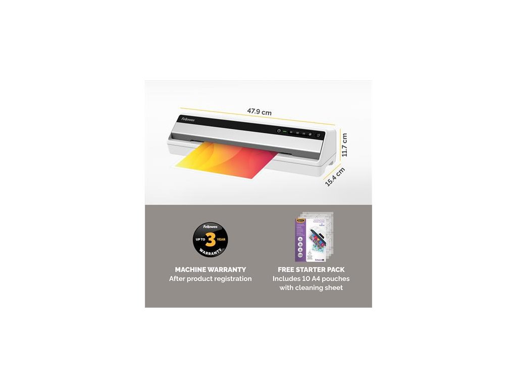 laminovací stroj do malej kancelárie, pre pravidelné používanie, doba zahrievania: 1 min, rýchlosť laminácie: 30 cm/min, základné balenie pre 10 dokumentovDodatočné parametre