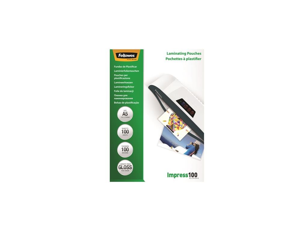 rozmer: A5 hrúbka: 100 mikrónov povrch: lesklý úroveň ochrany: každodenná vhodné na lamináciu oznámení, fotografií, certifikátov, ako aj v oblasti hobby a remesiel balenie: 100 ks/bal Pre dokonalé výsledky a vynikajúcu spoľahlivosť vždy používajte laminovacie fólie Fellowes® pre laminovacie stroje Fellowes®!Dodatočné parametre