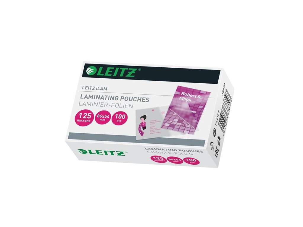 Pre lamináciu malých dokumentov veľkosti karty, perfektná ochrana veľmi často používaných vernostných kariet, visačiek, menoviek atď., veľkosť: 54x86 mm (veľkosť kreditnej karty), 125 mikrónov, 100 ks/bal Značka: LEITZ Výrobca: Esselte Kft. Adresa: 1139 Budapest, Lomb u. 37-39. A ép. II. 8., Hungary Web: https://www.accobrands.com/brands/ Email: hungarymarketing@acco.comDodatočné parametre