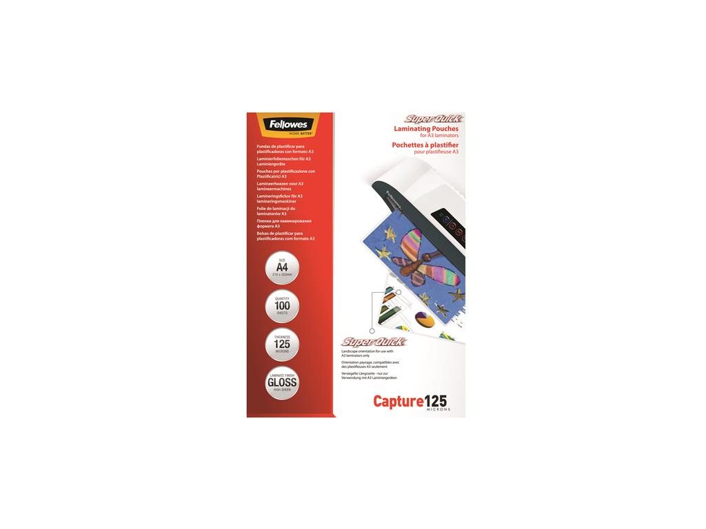 Laminovacia fólia, 125 mikr., A4, SuperQuick, lesklá, 100 ks, FELLOWES
