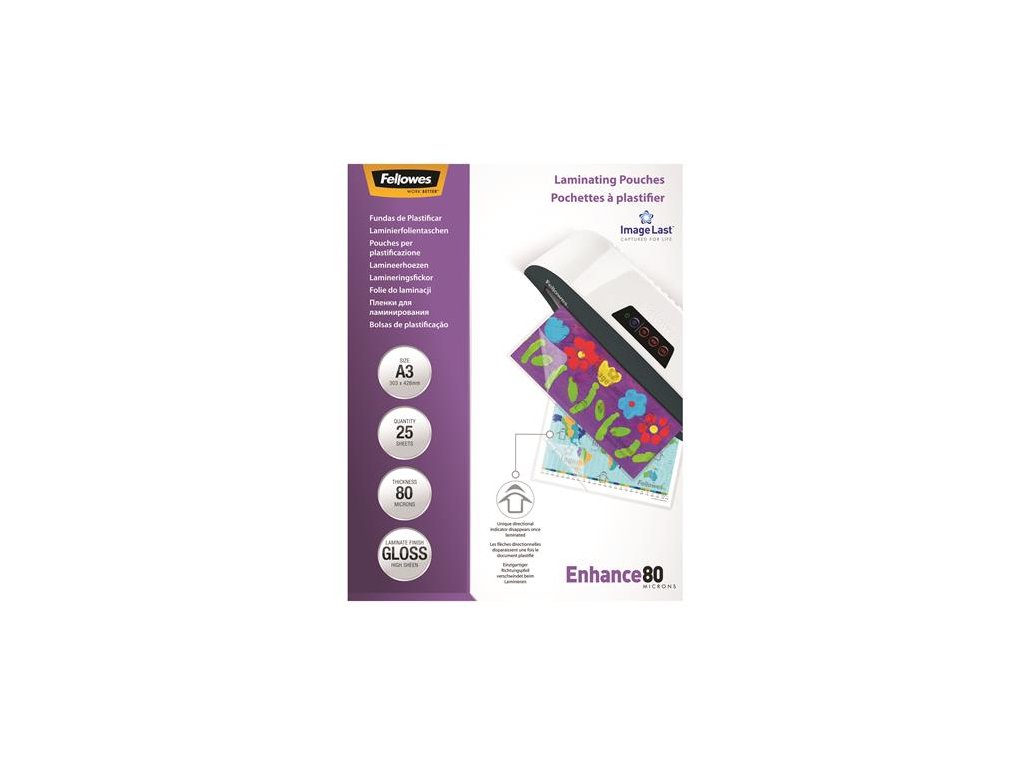 Laminovacia fólia, 80 mikr., A3, lesklá, 25 ks, FELLOWES