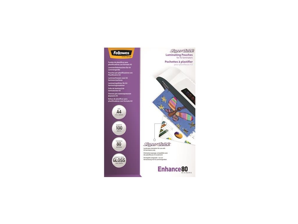 Laminovacia fólia, 80 mikr., A4, SuperQuick, lesklá, 100 ks, FELLOWES