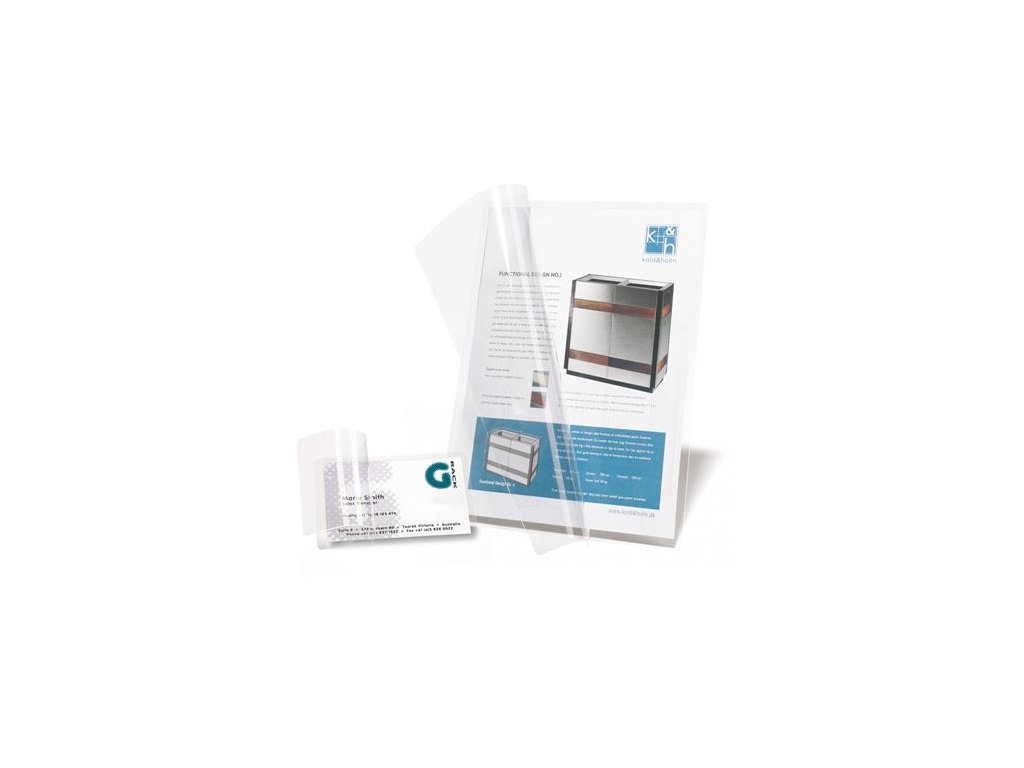 do veľkosti A4 laminovateľné napr. vizitky, dokumenty, fotografie, prezentačný materiál ochráni dokumenty pred znečistením, zamastením, vlhkosťou nie je potrebné použiť laminovací prístroj na zadnej strane je samolepiaca čiara predná strana: 200 mikr. zadná strana: 100 mikr.Dodatočné parametre